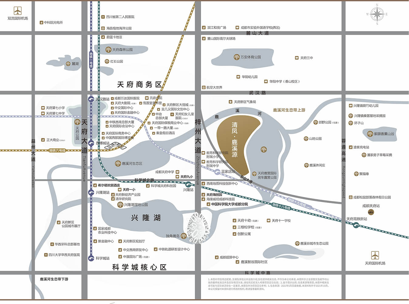 依托鹿溪河和兴隆湖两大生态资源优势,因地制宜,在项目打造时规划了独特的园林景观,造就出沉浸式的度假氛围,让人眼前一亮。高新科技企业齐聚,具备繁华都市的基因,又占据丰富的自然资源,完美结合“住”与“假”的双重需求。