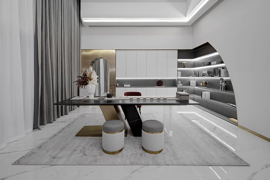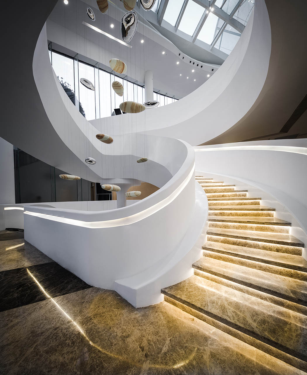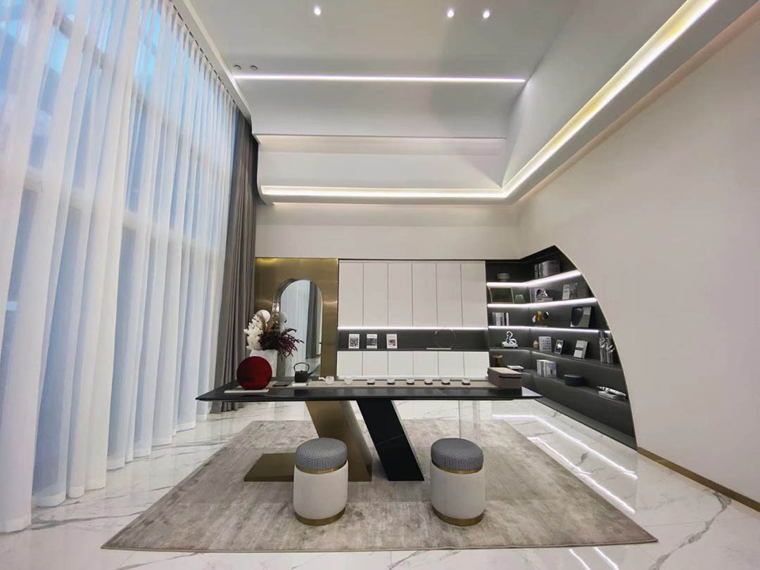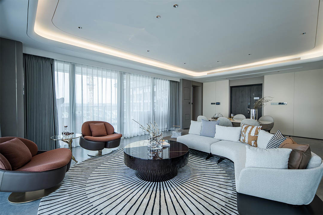 融合山水人城,犹如生长在公园里。整体占地约320亩,容积率仅约1.8。设计顺应原生丘陵地貌布局全端景墅大平层、臻钻岛院墅以及创世游艇豪宅,以大面积的玻璃幕墙设计,营造约50%窗地比,呈现超脱于市场的阔绰尺度,给予巨幅湖居的朗阔视野。