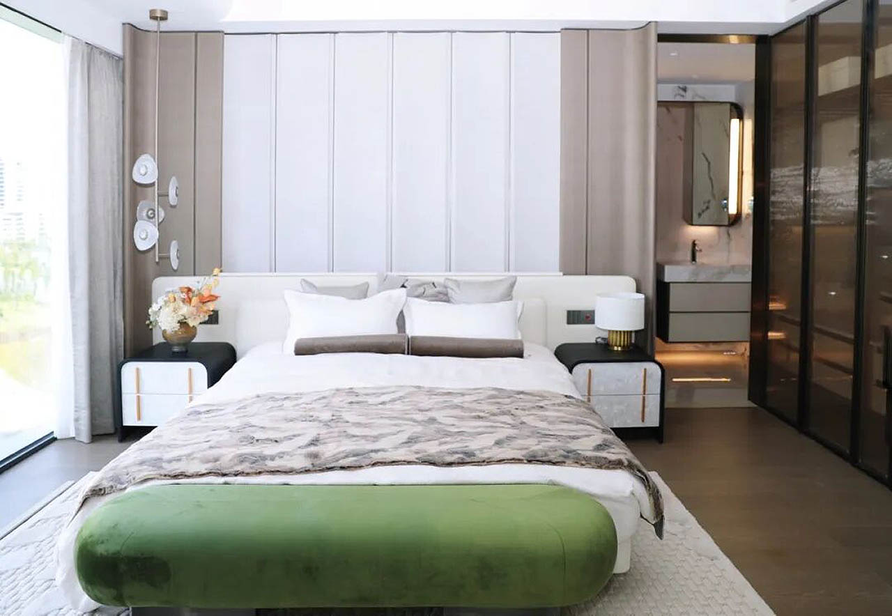 将全新居住空间嵌入约1100亩公园之中,让湖、公园、住区无界串联,打造成为全新的生活模式。在“茂林修竹、鸾鸟自歌”中归家,于城市、自然中,寻得生活怡然的全新体验。
