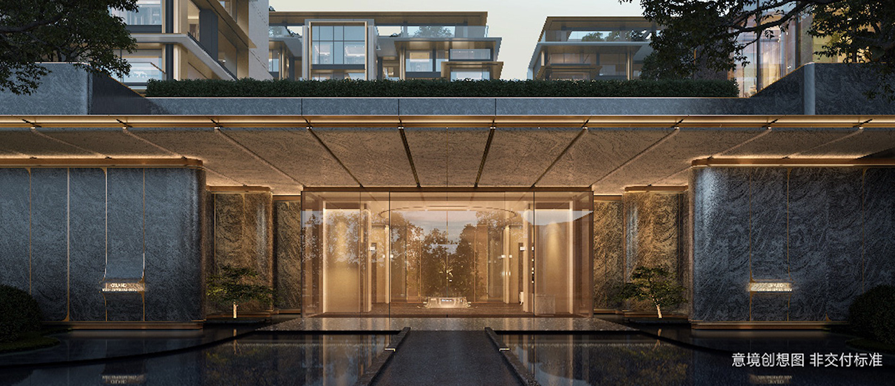 创造性的对市政公园进行深度改造,将城市公园改造为“社区外归家系统”,营造归屿前厅、峡谷花园、归屿内庭三大花园景观,为业主营造从繁城归来的多元转场,由此步入隐于繁华的避世之境,车马院花园,门头构筑充满了标识感,场域气质扑面而来。