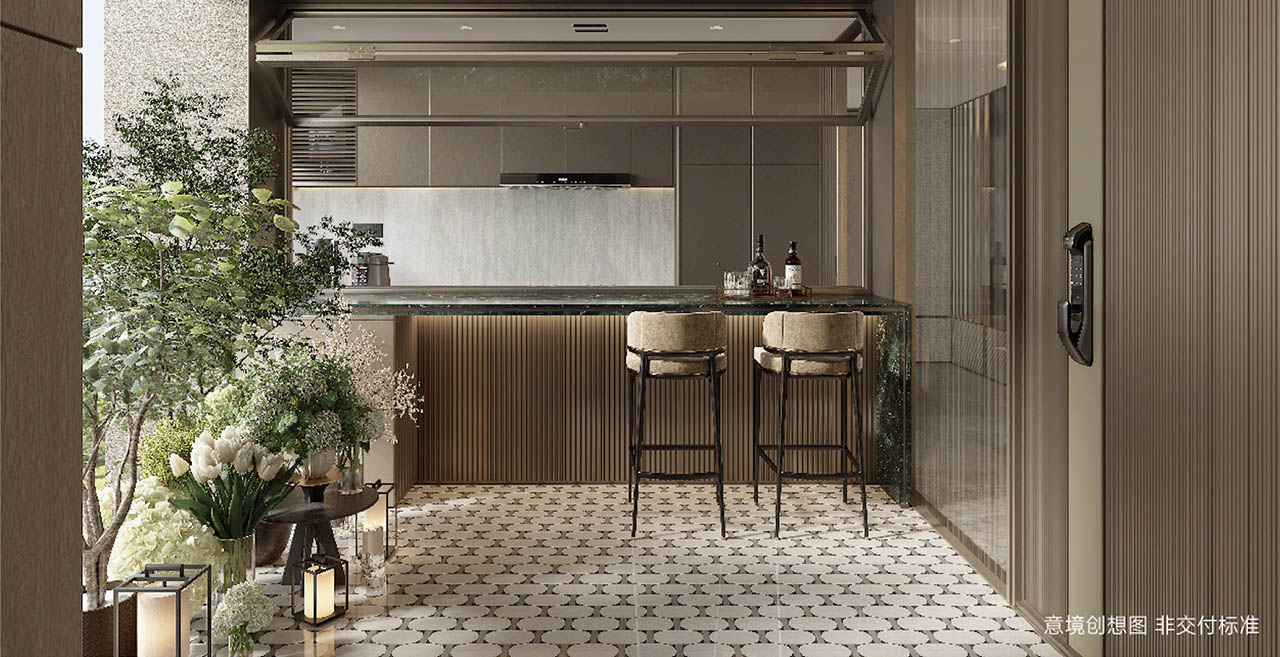 站位万象城东,立于三环内,外部约17亩的市政公园;内部社区多元主题花园中庭;家庭私域多个花园和露台构建的私享空间。园林中布置了红果冬青、朴树、乌桕等名贵树种,水景步道营造出别墅园区的归家仪式感。