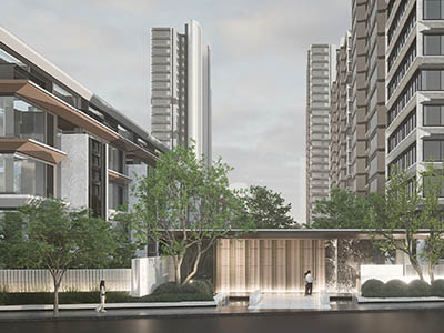 为实现优化的资源共享,高层建筑以L型布局绕社区外围围合而立,与叠墅间以大面积水陆岛屿式景观园林划分,以零遮挡的视野,实现栋栋皆楼王,户户皆瞰景,让每一栋业主的家都能化身为最佳观景台。