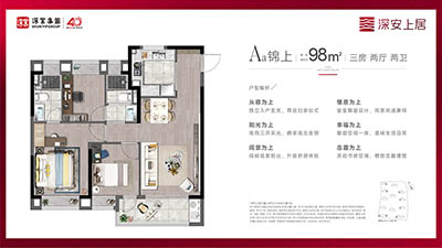 我们目前在售88平和98平两个户型,都是三房的设计。